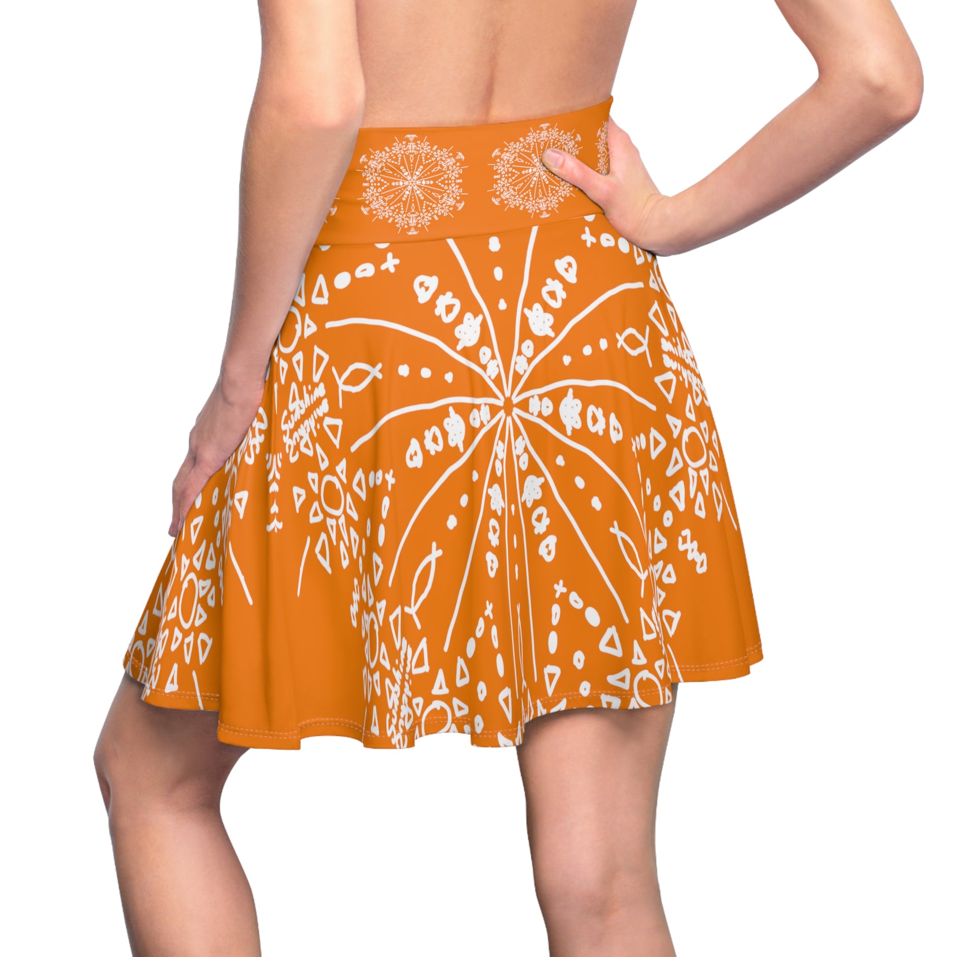 Ignite your fashion game with the Solar Flare Women's Skirt from Sunshine☀️. A product for the spirited and creative, this all-over-print (AOP) skater skirt offers a blend of cozy comfort and unique design that is sure to become an essential in your everyday wardrobe.
